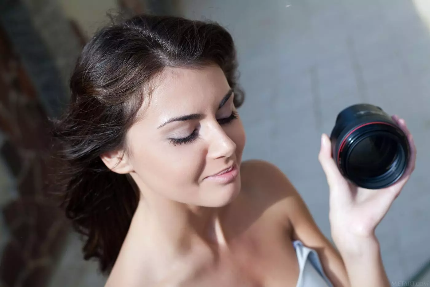 Очаровательная брюнетка Astrud A показывает свои большие соски и киску с прической — Astrud A
