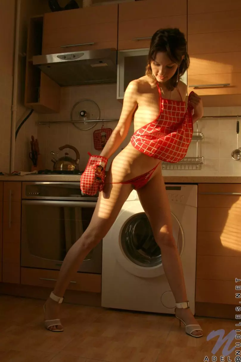 Голая домохозяйка Adel Nubiles в красном принимает волнующие позы верхом на стиральной машине — Adel Nubiles