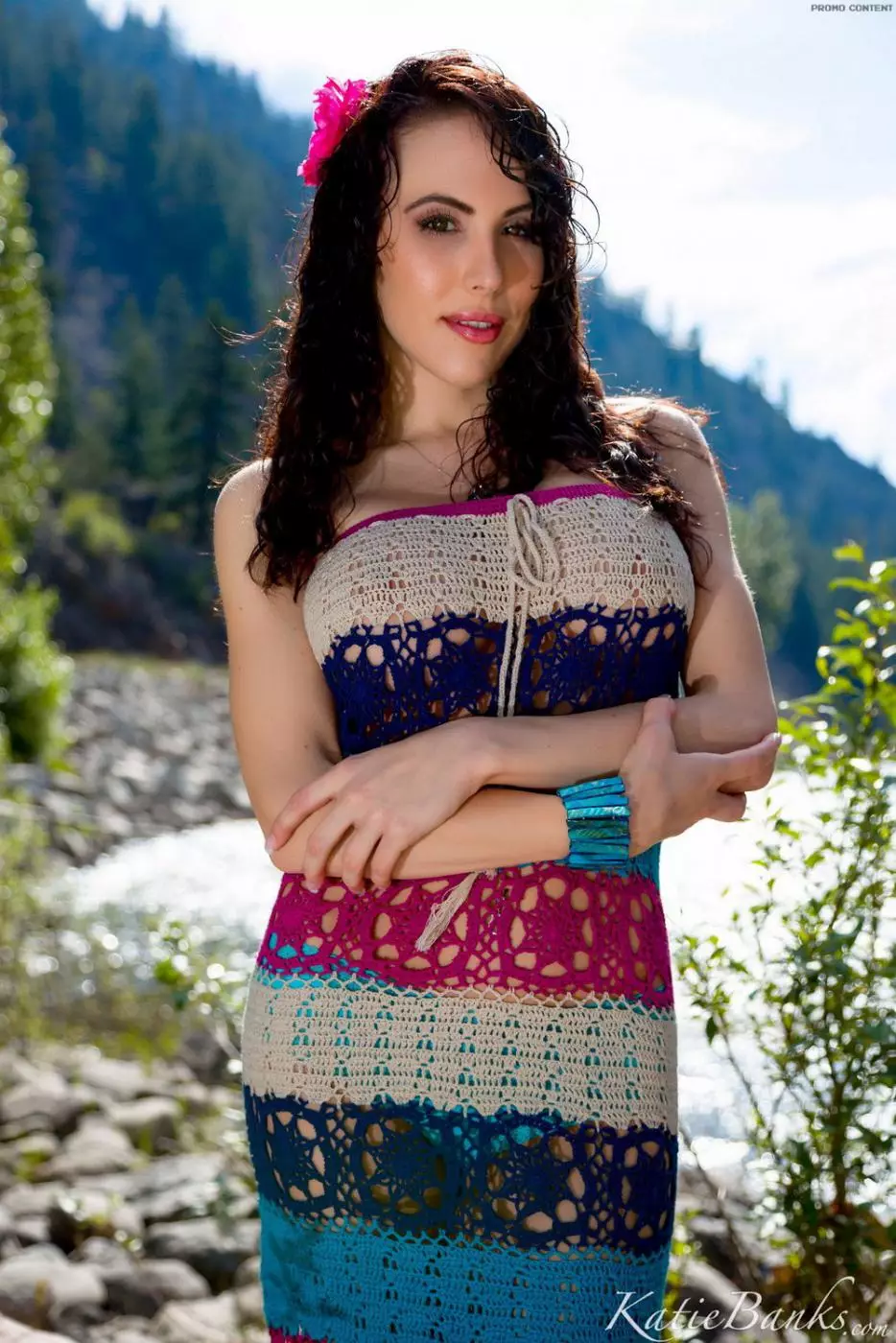 Грудастая милашка Katie Banks показывает красивые сиськи и бритую киску на природе — Katie Banks