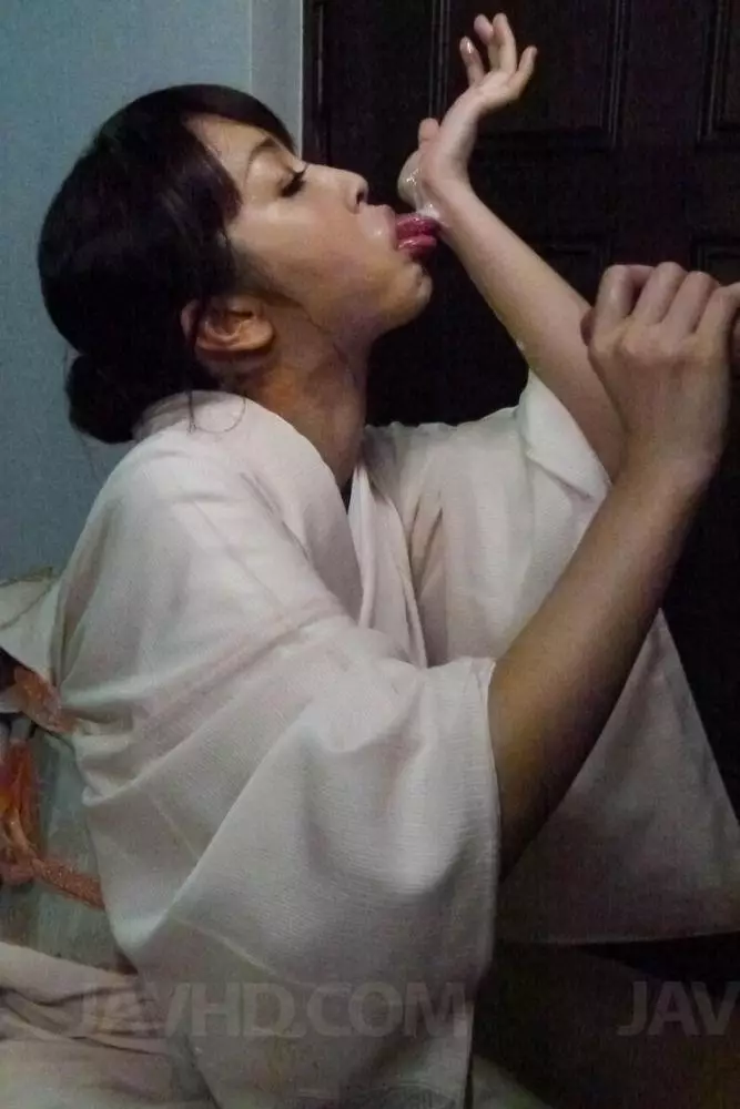 Азиатская красотка в традиционном наряде Marika Javhd сосет член и получает большую порцию спермы — Marika Javhd