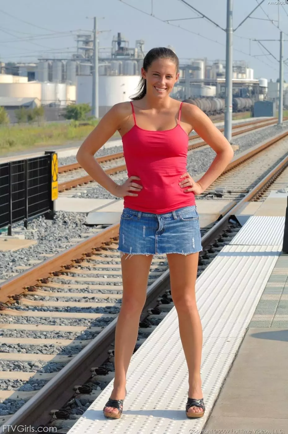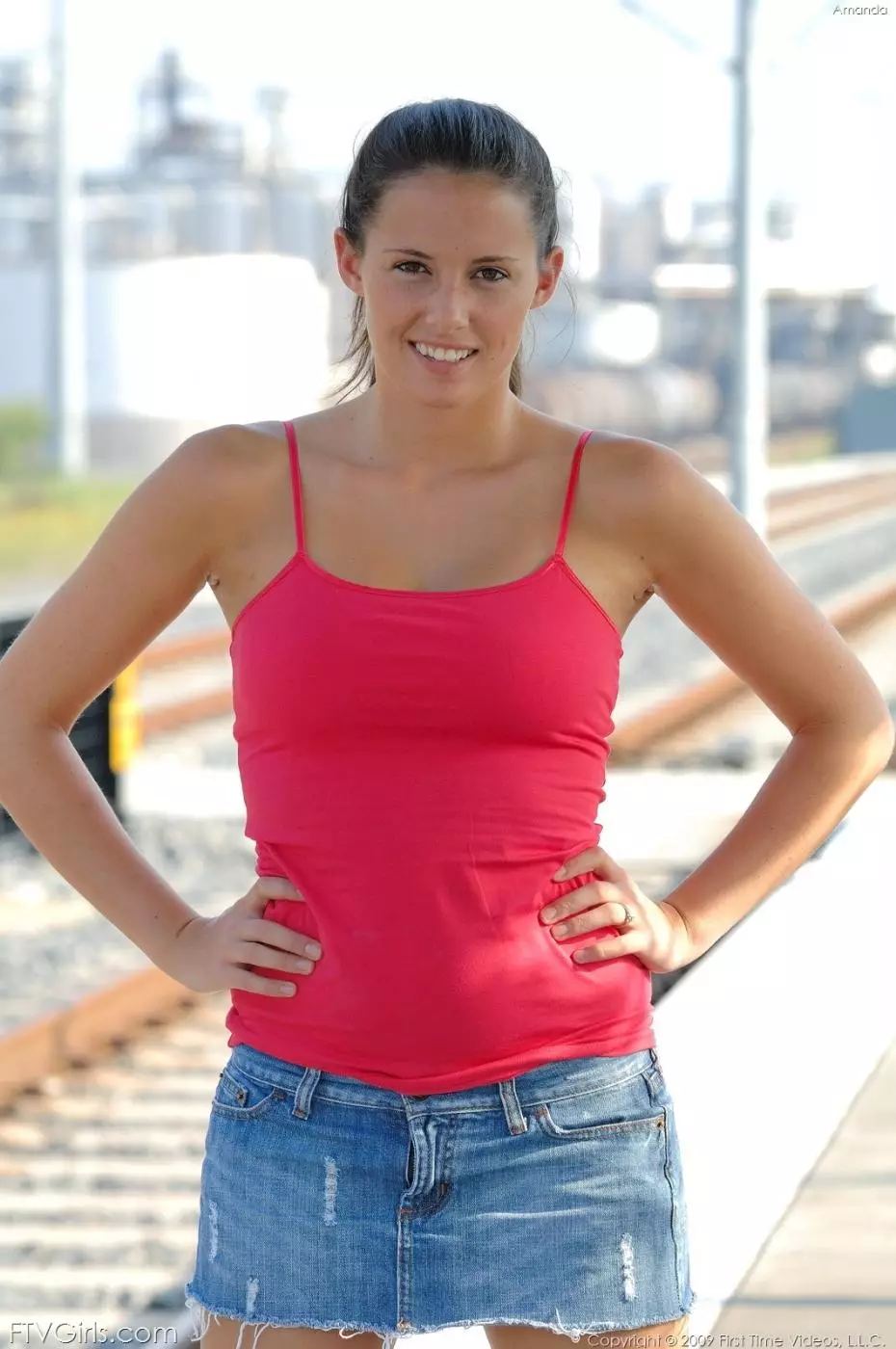 Amanda FTV без лифчика и трусиков под топом и юбкой, показывает все на публике — Amanda FTV