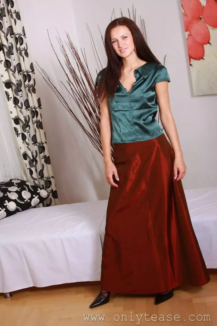 Необычайно стройная модель Andrea Drapelova снимает свою ультрадлинную юбку и шелковую блузку — Andrea Drapelova