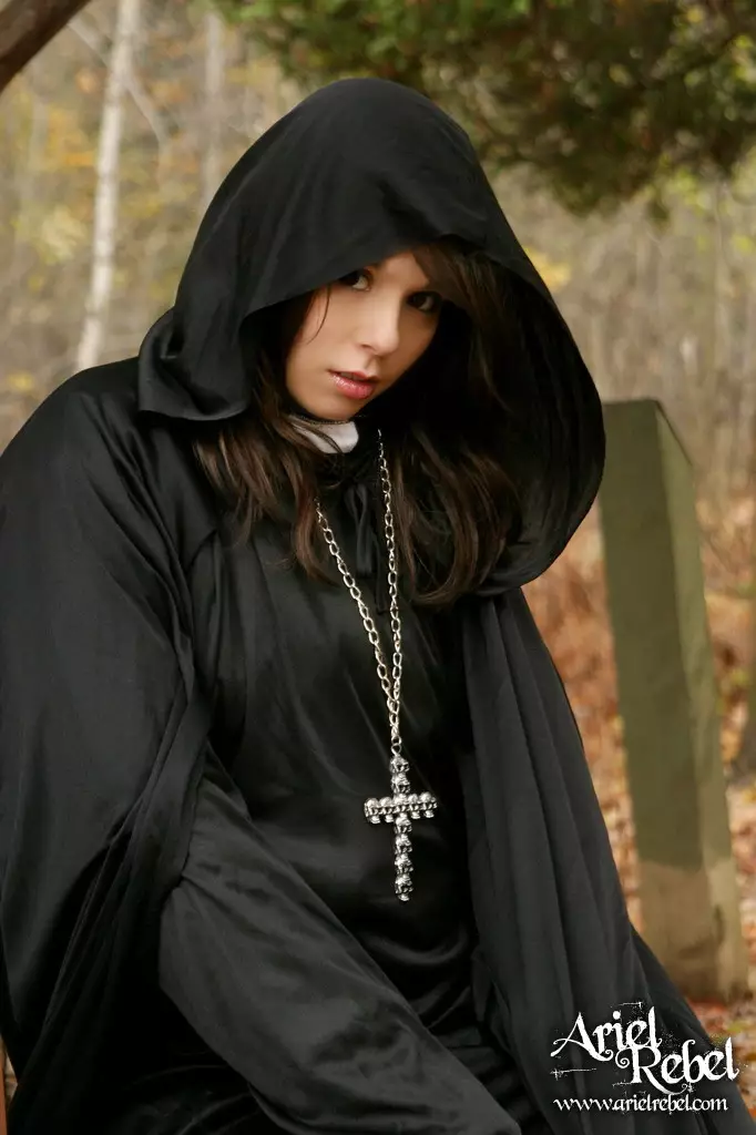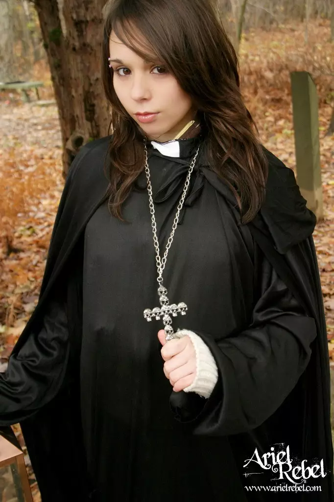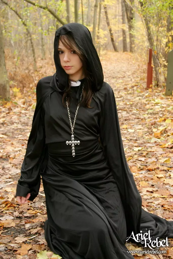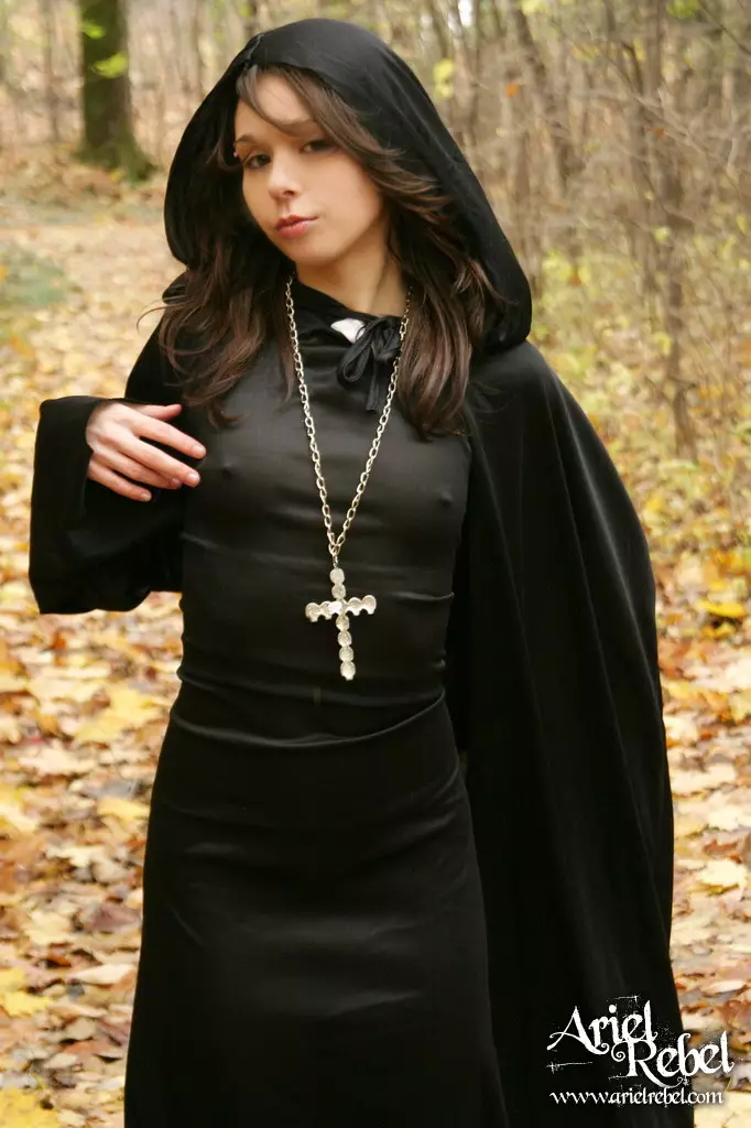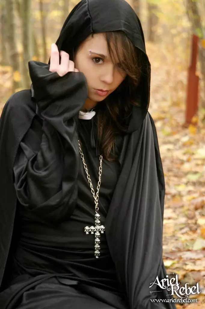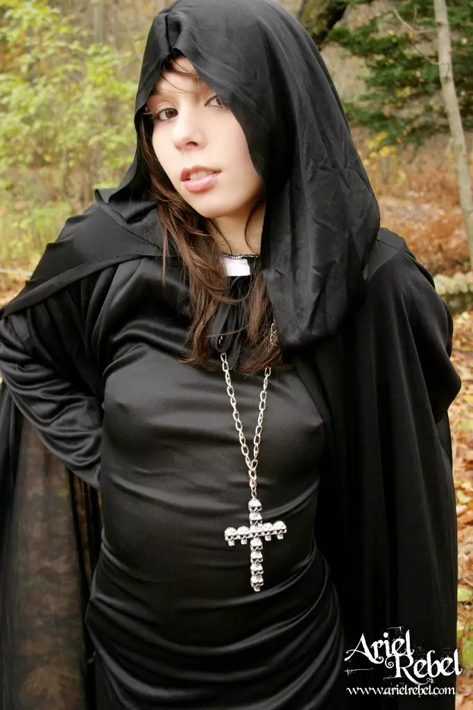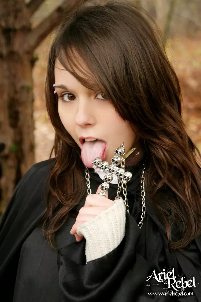Капризная малолеточка Ariel Rebel одетая в черное, засветила свою лысую киску на открытом воздухе — Ariel Rebel
