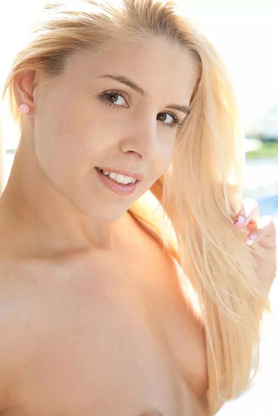 Блондиночка Brandy Smile без раздумий раздевается на улице — Brandy Smile